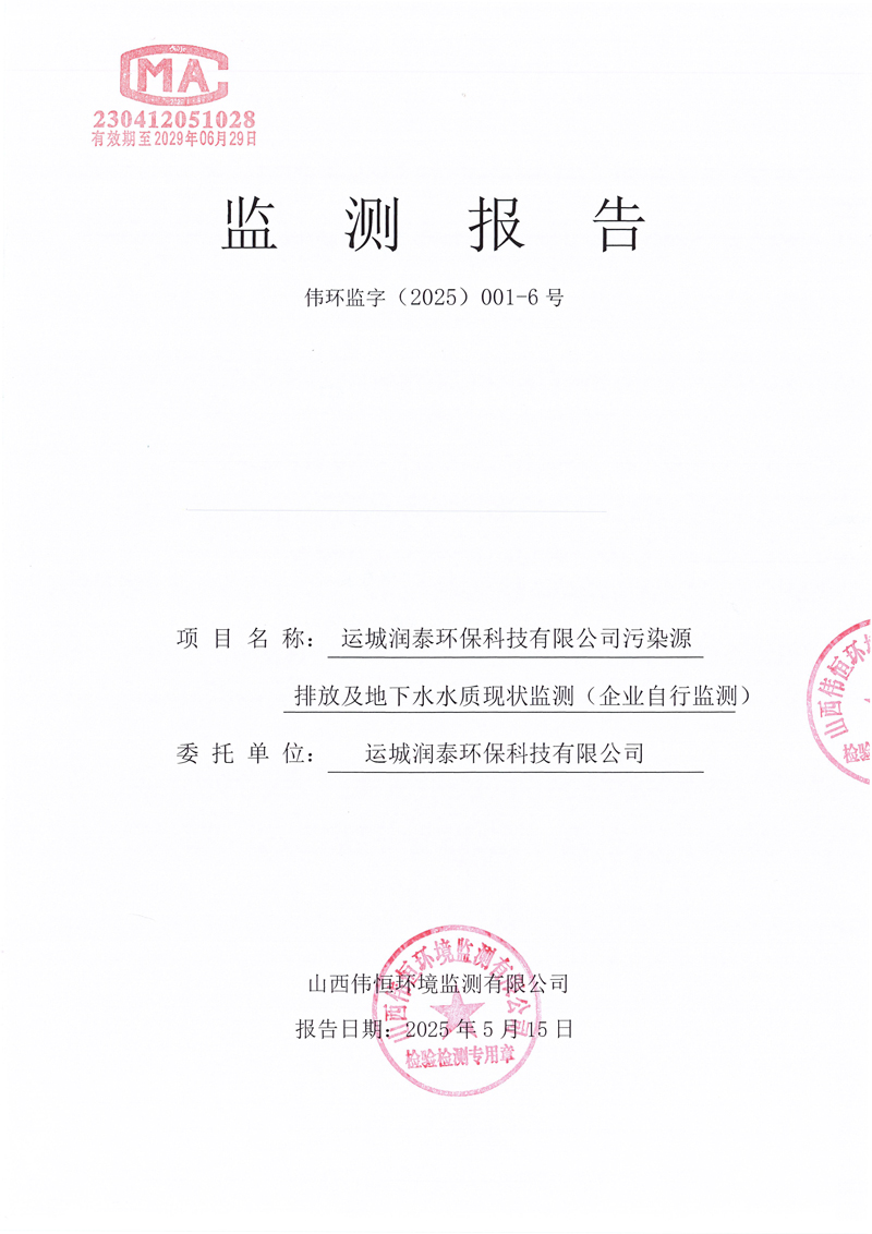 2025年潤泰環(huán)保五月份自行監(jiān)測報(bào)告