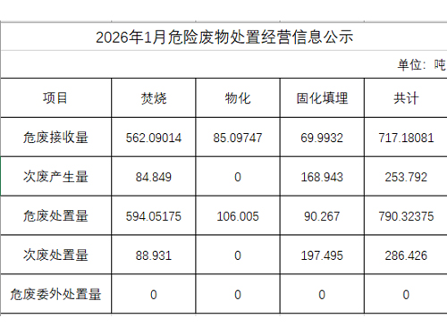 2026年1月危險廢物處置經(jīng)營信息公示