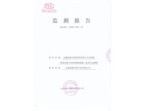 2026年潤泰環(huán)保一月份自行監(jiān)測報告